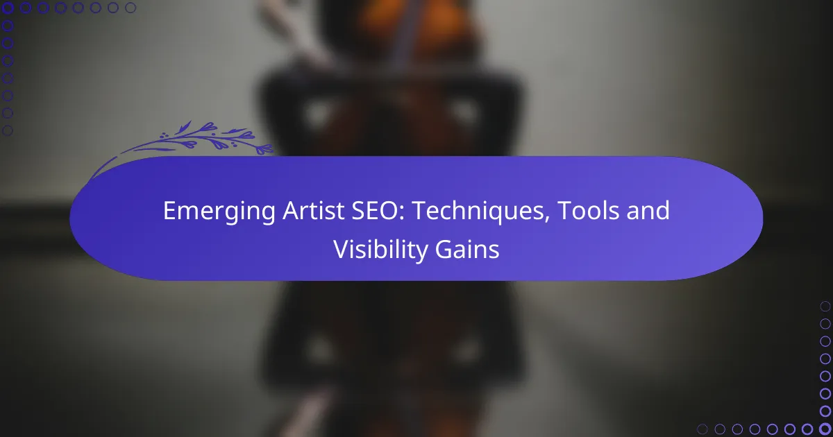 Emerging artists can significantly boost their online visibility by employing effective SEO techniques tailored to their unique needs. By focusing on strategies such as keyword research, website optimization, and leveraging social media, artists can enhance their discoverability and engage with a broader audience. Utilizing specialized tools can further refine these efforts, leading to improved search engine rankings and increased fan interaction.